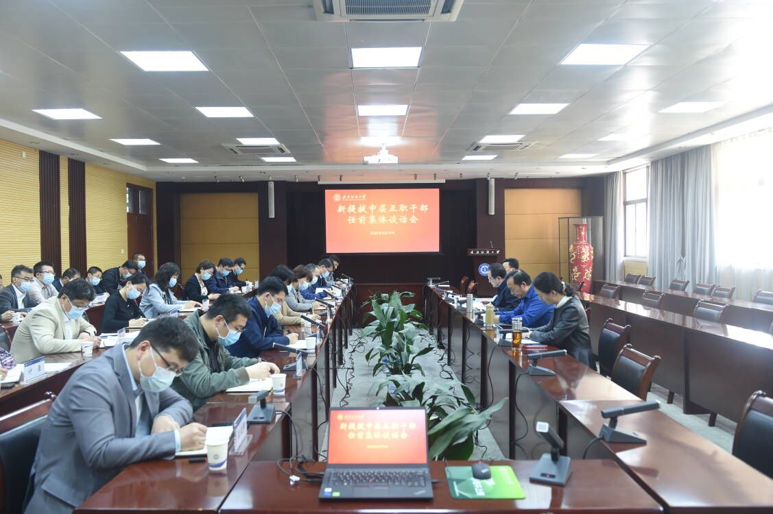 4月19日下午,校党委书记田辉玉对学校新提拔的中层正职干部进行任前集体谈话,提出“讲政治、讲学习、讲团结、讲担当、讲廉洁”五点明确要求,校党委副书记黄国辅主持,校党委常委、纪委书记程碧海,校党委常委、党委组织部部长金艳出席,党委组织部、纪委综合室有关负责人参加会议。